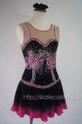 大会用フィギュアスケート衣装/品番GRC-022黒×ピンク/豪華コスチューム