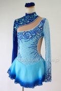大会用フィギュアスケート衣装/品番GRC-029青×水色/豪華コスチューム