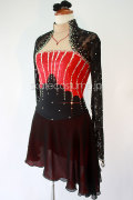 大会用フィギュアスケート衣装/品番VCT-037黒×赤/豪華コスチューム